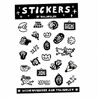 Das Sticker Set hat eine Grösse von A6 und kommt mit 22 handgezeichneten Motiven.